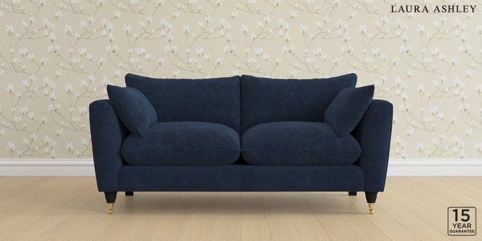 6.12.13 Buy Casterton by Laura Ashley 3 Seater Small Sofa Alwyn Velvet Midnight Navy Low Brass Castor - Black from the Laura Ashley online shop Click here to use our website with more accessibility support, for example screen readers