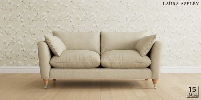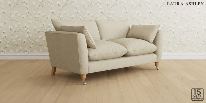 6.12.1 Buy Casterton by Laura Ashley 3 Seater Small Sofa Anneliese Natural Low Chrome Castor - Light Oak from the Laura Ashley online shop Click here to use our website with more accessibility support, for example screen readers