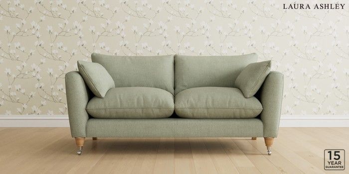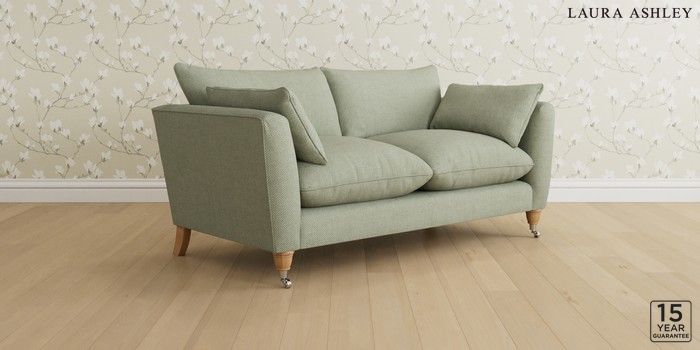 6.12.1 Buy Casterton by Laura Ashley 3 Seater Small Sofa Anneliese Sage Green Low Chrome Castor - Light Oak from the Laura Ashley online shop Click here to use our website with more accessibility support, for example screen readers