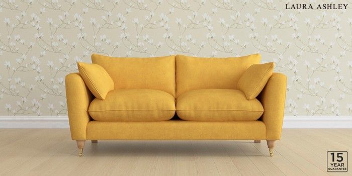 6.12.1 Buy Casterton by Laura Ashley 3 Seater Small Sofa Bainton Ochre Yellow Low Brass Castor - Light Oak from the Laura Ashley online shop Click here to use our website with more accessibility support, for example screen readers