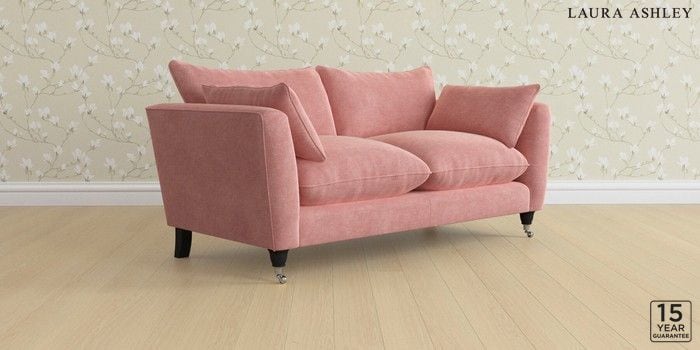 6.12.1 Buy Casterton by Laura Ashley 3 Seater Small Sofa Bainton Old Rose Pink Low Chrome Castor - Black from the Laura Ashley online shop Click here to use our website with more accessibility support, for example screen readers