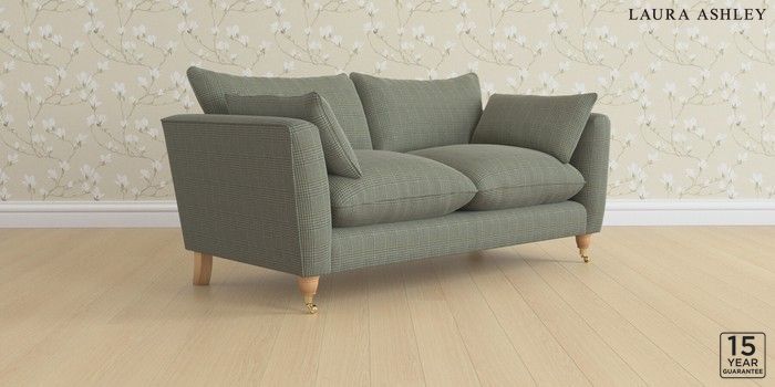 6.12.1 Buy Casterton by Laura Ashley 3 Seater Small Sofa Birchgrove Check Olive Green Low Brass Castor - Light Oak from the Laura Ashley online shop Click here to use our website with more accessibility support, for example screen readers