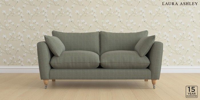 6.12.1 Buy Casterton by Laura Ashley 3 Seater Small Sofa Birchgrove Check Olive Green Low Chrome Castor - Light Oak from the Laura Ashley online shop Click here to use our website with more accessibility support, for example screen readers