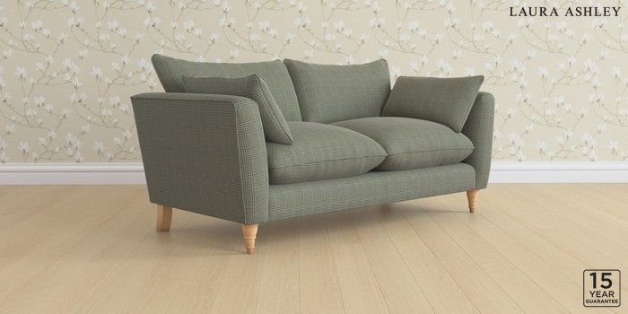 6.12.1 Buy Casterton by Laura Ashley 3 Seater Small Sofa Birchgrove Check Olive Green Low Turned - Light Oak from the Laura Ashley online shop Click here to use our website with more accessibility support, for example screen readers