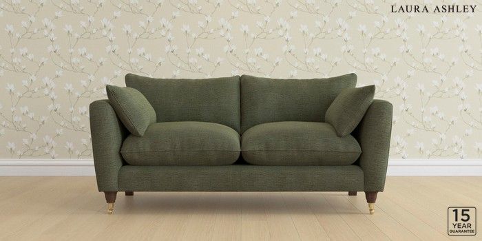 6.12.1 Buy Casterton by Laura Ashley 3 Seater Small Sofa Edwin Chenille Hedgerow Green Low Brass Castor - Chestnut from the Laura Ashley online shop Click here to use our website with more accessibility support, for example screen readers