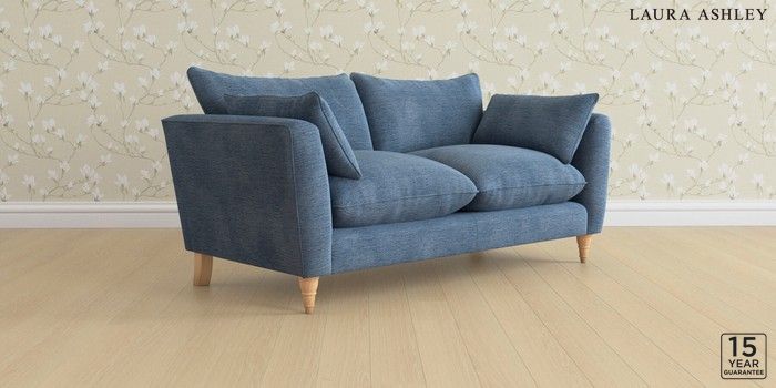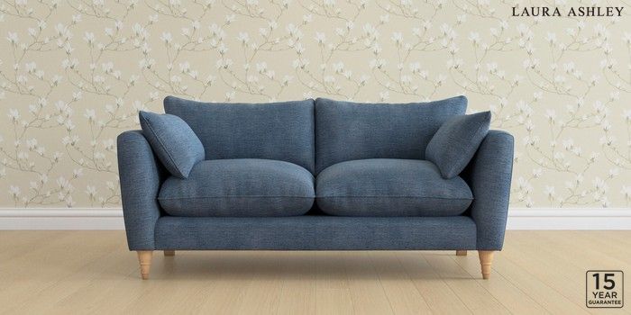 6.12.1 Buy Casterton by Laura Ashley 3 Seater Small Sofa Edwin Chenille Seaspray Blue Low Turned - Light Oak from the Laura Ashley online shop Click here to use our website with more accessibility support, for example screen readers