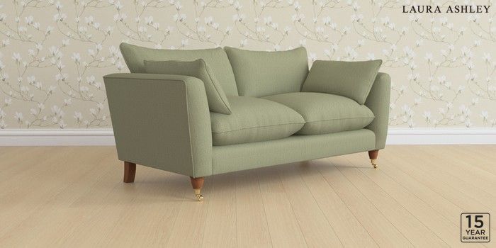 6.12.1 Buy Casterton by Laura Ashley 3 Seater Small Sofa Edwin Herringbone Hedgerow Green Low Brass Castor - Teak from the Laura Ashley online shop Click here to use our website with more accessibility support, for example screen readers