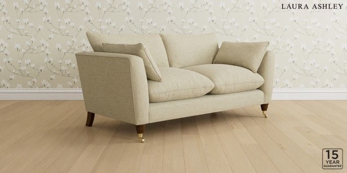 6.12.1 Buy Casterton by Laura Ashley 3 Seater Small Sofa Harley Natural Low Brass Castor - Teak from the Laura Ashley online shop Click here to use our website with more accessibility support, for example screen readers