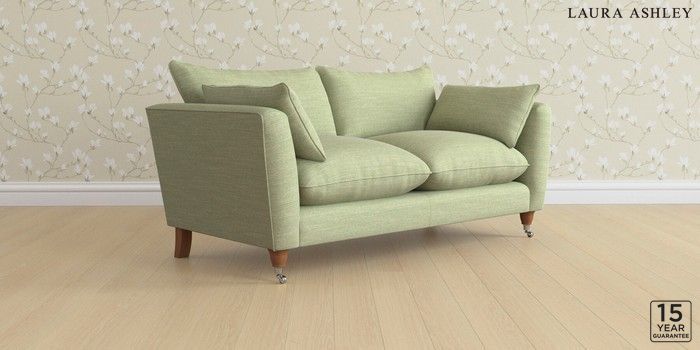 6.12.1 Buy Casterton by Laura Ashley 3 Seater Small Sofa Kinsham Hedgerow Green Low Chrome Castor - Teak from the Laura Ashley online shop Click here to use our website with more accessibility support, for example screen readers
