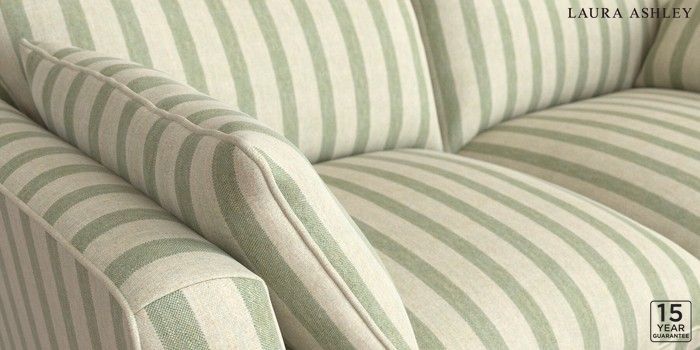 6.12.1 Buy Casterton by Laura Ashley 3 Seater Small Sofa Kinsham Stripe Hedgerow Green Low Brass Castor - Light Oak from the Laura Ashley online shop Click here to use our website with more accessibility support, for example screen readers
