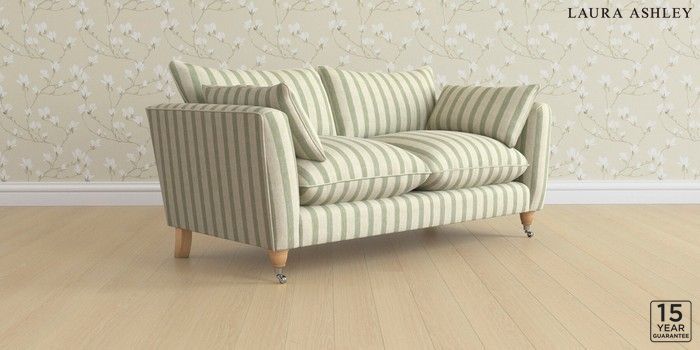 6.12.1 Buy Casterton by Laura Ashley 3 Seater Small Sofa Kinsham Stripe Hedgerow Green Low Chrome Castor - Light Oak from the Laura Ashley online shop Click here to use our website with more accessibility support, for example screen readers
