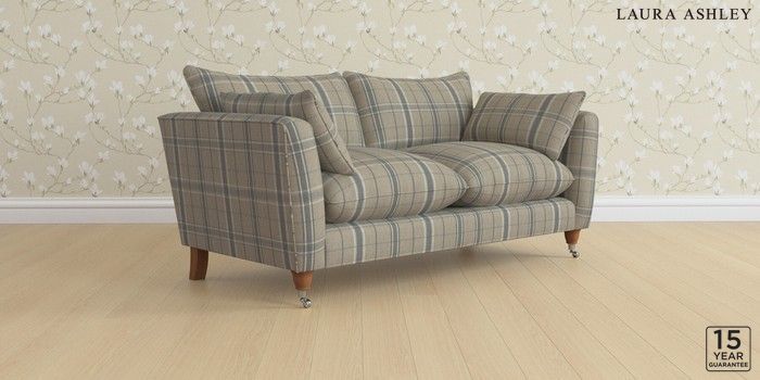 6.12.13 Buy Casterton by Laura Ashley 3 Seater Small Sofa Longstowe Check French Grey Low Chrome Castor - Teak from the Laura Ashley online shop Click here to use our website with more accessibility support, for example screen readers