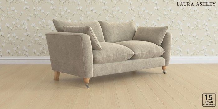 6.12.1 Buy Casterton by Laura Ashley 3 Seater Small Sofa Lundar Chenille Truffle Natural Low Chrome Castor - Light Oak from the Laura Ashley online shop Click here to use our website with more accessibility support, for example screen readers