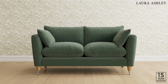 6.12.1 Buy Casterton by Laura Ashley 3 Seater Small Sofa Nantmor Fern Green Low Chrome Castor - Light Oak from the Laura Ashley online shop Click here to use our website with more accessibility support, for example screen readers
