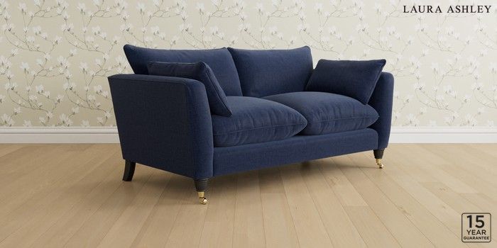 6.12.1 Buy Casterton by Laura Ashley 3 Seater Small Sofa Nantmor Midnight Navy Low Brass Castor - Black from the Laura Ashley online shop Click here to use our website with more accessibility support, for example screen readers