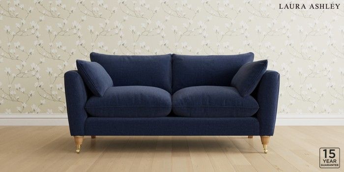 6.12.1 Buy Casterton by Laura Ashley 3 Seater Small Sofa Nantmor Midnight Navy Low Brass Castor - Light Oak from the Laura Ashley online shop Click here to use our website with more accessibility support, for example screen readers