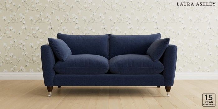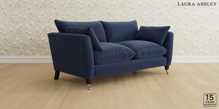 6.12.1 Buy Casterton by Laura Ashley 3 Seater Small Sofa Nantmor Midnight Navy Low Chrome Castor - Chestnut from the Laura Ashley online shop Click here to use our website with more accessibility support, for example screen readers