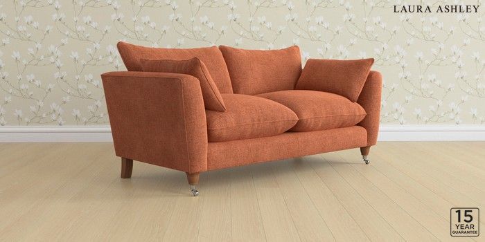 6.12.13 Buy Casterton by Laura Ashley 3 Seater Small Sofa Nantmor Rust Orange Low Chrome Castor - Teak from the Laura Ashley online shop Click here to use our website with more accessibility support, for example screen readers