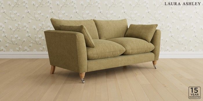 6.12.1 Buy Casterton by Laura Ashley 3 Seater Small Sofa Orla Gold Natural Low Chrome Castor - Light Oak from the Laura Ashley online shop Click here to use our website with more accessibility support, for example screen readers