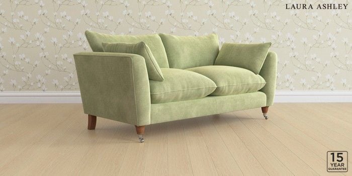 6.12.1 Buy Casterton by Laura Ashley 3 Seater Small Sofa Orla Pale Hedgerow Green Low Chrome Castor - Teak from the Laura Ashley online shop Click here to use our website with more accessibility support, for example screen readers