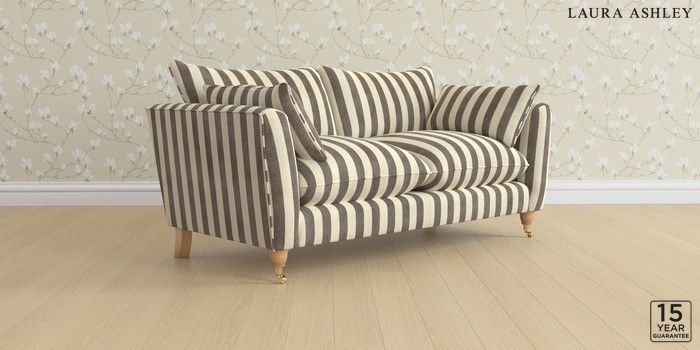 6.12.1 Buy Casterton by Laura Ashley 3 Seater Small Sofa Orla Stripe Dark Truffle Natural Low Brass Castor - Light Oak from the Laura Ashley online shop Click here to use our website with more accessibility support, for example screen readers