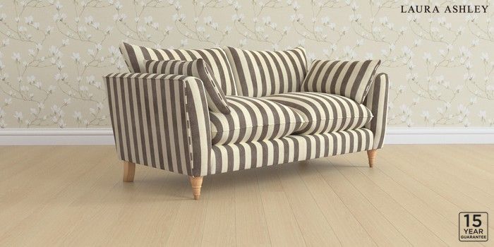 6.12.1 Buy Casterton by Laura Ashley 3 Seater Small Sofa Orla Stripe Dark Truffle Natural Low Turned - Light Oak from the Laura Ashley online shop Click here to use our website with more accessibility support, for example screen readers