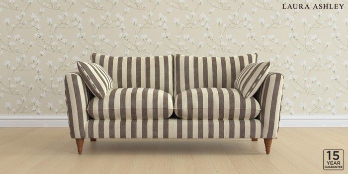 6.12.1 Buy Casterton by Laura Ashley 3 Seater Small Sofa Orla Stripe Dark Truffle Natural Low Turned - Teak from the Laura Ashley online shop Click here to use our website with more accessibility support, for example screen readers