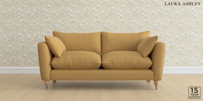 6.12.1 Buy Casterton by Laura Ashley 3 Seater Small Sofa Peyton Ochre Yellow Low Chrome Castor - Light Oak from the Laura Ashley online shop Click here to use our website with more accessibility support, for example screen readers