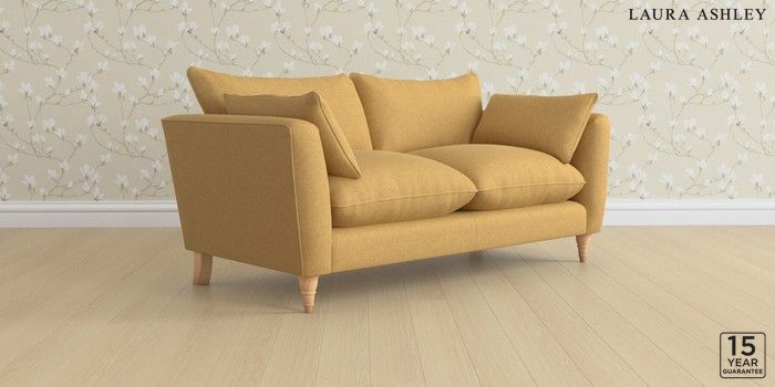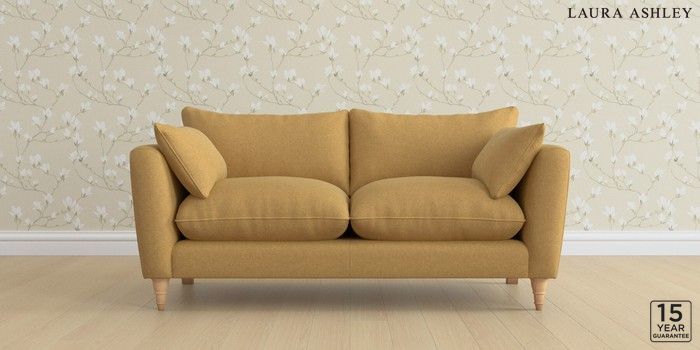 6.12.1 Buy Casterton by Laura Ashley 3 Seater Small Sofa Peyton Ochre Yellow Low Turned - Light Oak from the Laura Ashley online shop Click here to use our website with more accessibility support, for example screen readers