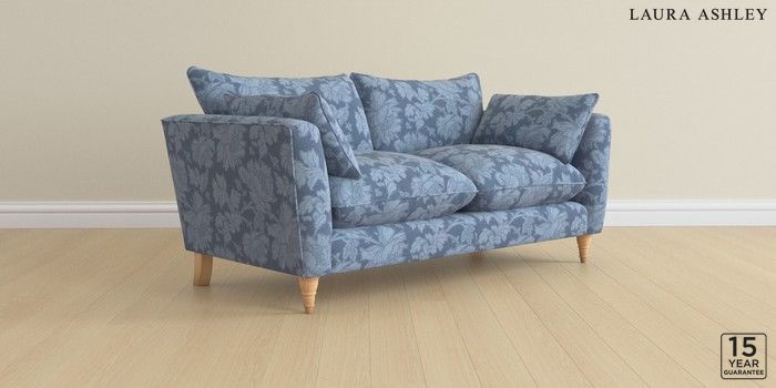 6.12.1 Buy Casterton by Laura Ashley 3 Seater Small Sofa Tamara Dusky Seaspray Blue Low Turned - Light Oak from the Laura Ashley online shop Click here to use our website with more accessibility support, for example screen readers