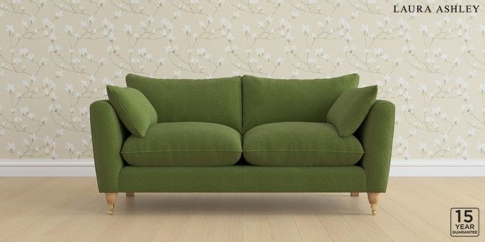 6.12.1 Buy Casterton by Laura Ashley 3 Seater Small Sofa Tichwell Olive Green Low Brass Castor - Light Oak from the Laura Ashley online shop Click here to use our website with more accessibility support, for example screen readers