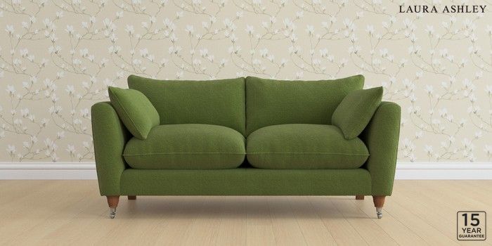 6.12.1 Buy Casterton by Laura Ashley 3 Seater Small Sofa Tichwell Olive Green Low Chrome Castor - Teak from the Laura Ashley online shop Click here to use our website with more accessibility support, for example screen readers