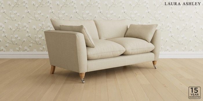 6.12.1 Buy Casterton by Laura Ashley 3 Seater Small Sofa Wooton Natural Low Chrome Castor - Light Oak from the Laura Ashley online shop Click here to use our website with more accessibility support, for example screen readers