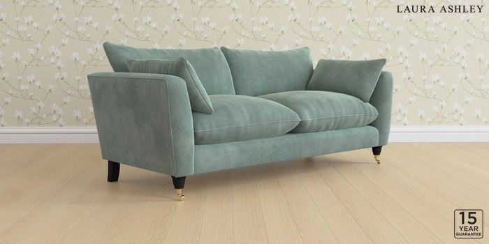 6.12.1 Buy Casterton by Laura Ashley 3 Seater Sofa Ailsworth Fern Green Low Brass Castor - Black from the Laura Ashley online shop Click here to use our website with more accessibility support, for example screen readers