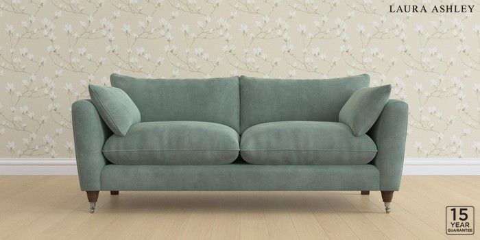 6.12.1 Buy Casterton by Laura Ashley 3 Seater Sofa Ailsworth Fern Green Low Chrome Castor - Chestnut from the Laura Ashley online shop Click here to use our website with more accessibility support, for example screen readers