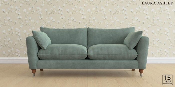 6.12.1 Buy Casterton by Laura Ashley 3 Seater Sofa Ailsworth Fern Green Low Chrome Castor - Teak from the Laura Ashley online shop Click here to use our website with more accessibility support, for example screen readers