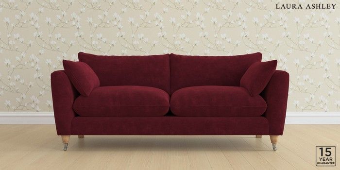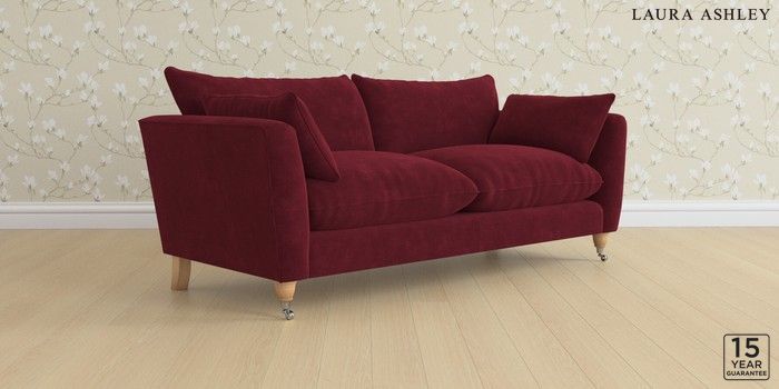 6.12.1 Buy Casterton by Laura Ashley 3 Seater Sofa Alwyn Velvet Burgundy Red Low Chrome Castor - Light Oak from the Laura Ashley online shop Click here to use our website with more accessibility support, for example screen readers