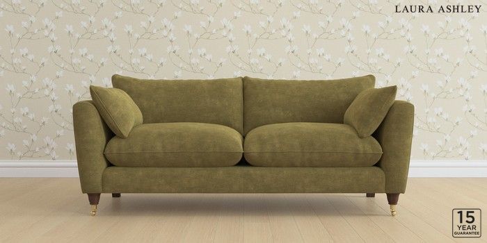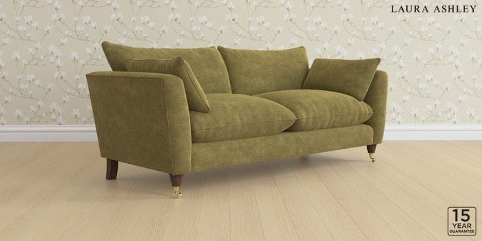 6.12.13 Buy Casterton by Laura Ashley 3 Seater Sofa Alwyn Velvet Olive Green Low Brass Castor - Chestnut from the Laura Ashley online shop Click here to use our website with more accessibility support, for example screen readers