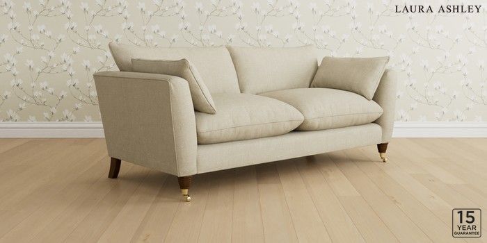 6.12.13 Buy Casterton by Laura Ashley 3 Seater Sofa Anneliese Natural Low Brass Castor - Teak from the Laura Ashley online shop Click here to use our website with more accessibility support, for example screen readers