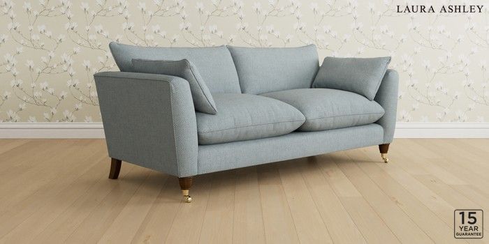 6.12.13 Buy Casterton by Laura Ashley 3 Seater Sofa Anneliese Seaspray Blue Low Brass Castor - Teak from the Laura Ashley online shop Click here to use our website with more accessibility support, for example screen readers