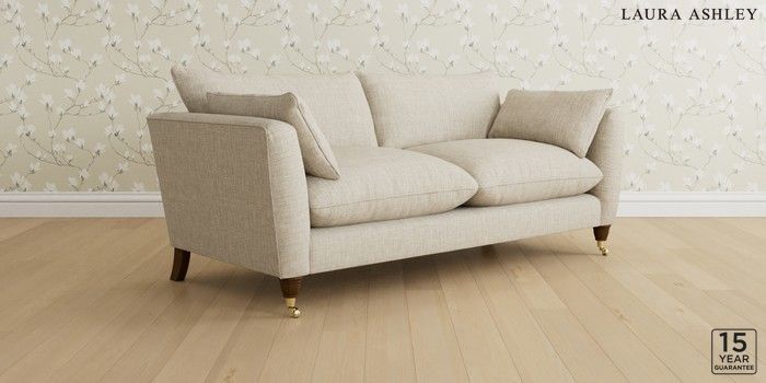 6.12.1 Buy Casterton by Laura Ashley 3 Seater Sofa Bainton Natural Low Brass Castor - Teak from the Laura Ashley online shop Click here to use our website with more accessibility support, for example screen readers