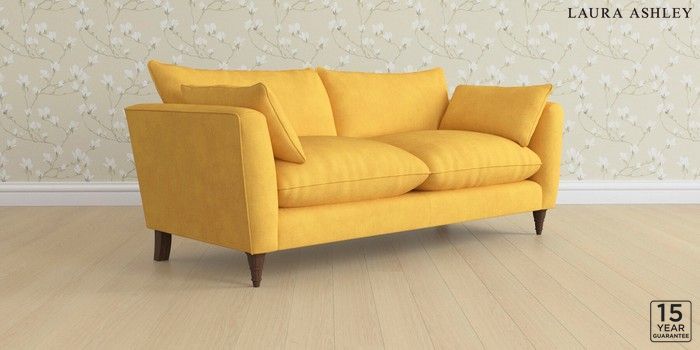 6.12.1 Buy Casterton by Laura Ashley 3 Seater Sofa Bainton Ochre Yellow Low Turned - Chestnut from the Laura Ashley online shop Click here to use our website with more accessibility support, for example screen readers