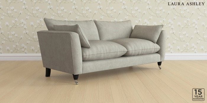 6.12.1 Buy Casterton by Laura Ashley 3 Seater Sofa Bainton Pale Steel Grey Low Chrome Castor - Black from the Laura Ashley online shop Click here to use our website with more accessibility support, for example screen readers