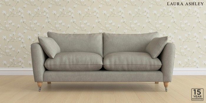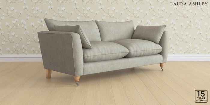 6.12.13 Buy Casterton by Laura Ashley 3 Seater Sofa Bainton Pale Steel Grey Low Chrome Castor - Light Oak from the Laura Ashley online shop Click here to use our website with more accessibility support, for example screen readers