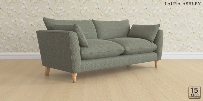 6.12.13 Buy Casterton by Laura Ashley 3 Seater Sofa Birchgrove Check Olive Green Low Turned - Light Oak from the Laura Ashley online shop Click here to use our website with more accessibility support, for example screen readers