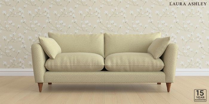 6.12.1 Buy Casterton by Laura Ashley 3 Seater Sofa Chequers Hedgerow Green Low Turned - Teak from the Laura Ashley online shop Click here to use our website with more accessibility support, for example screen readers