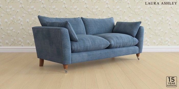 6.12.1 Buy Casterton by Laura Ashley 3 Seater Sofa Edwin Chenille Seaspray Blue Low Chrome Castor - Teak from the Laura Ashley online shop Click here to use our website with more accessibility support, for example screen readers