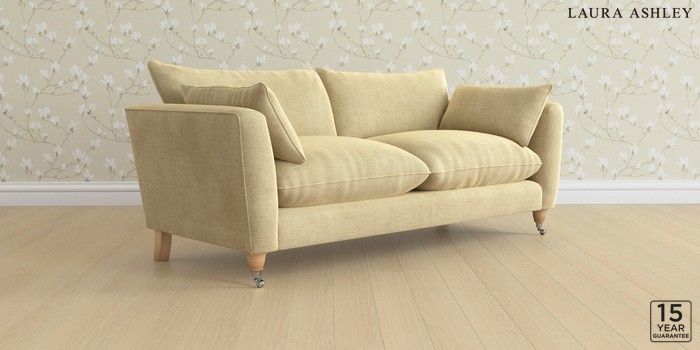 6.12.1 Buy Casterton by Laura Ashley 3 Seater Sofa Edwin Chenille Truffle Natural Low Chrome Castor - Light Oak from the Laura Ashley online shop Click here to use our website with more accessibility support, for example screen readers