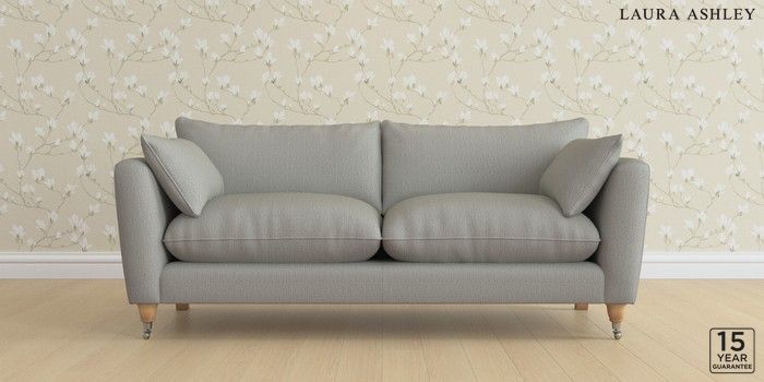 6.12.1 Buy Casterton by Laura Ashley 3 Seater Sofa Edwin Herringbone Pale Steel Grey Low Chrome Castor - Light Oak from the Laura Ashley online shop Click here to use our website with more accessibility support, for example screen readers