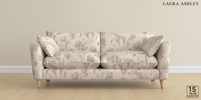 6.12.1 Buy Casterton by Laura Ashley 3 Seater Sofa Gosford Weave Dusky Plum Purple Low Turned - Light Oak from the Laura Ashley online shop Click here to use our website with more accessibility support, for example screen readers